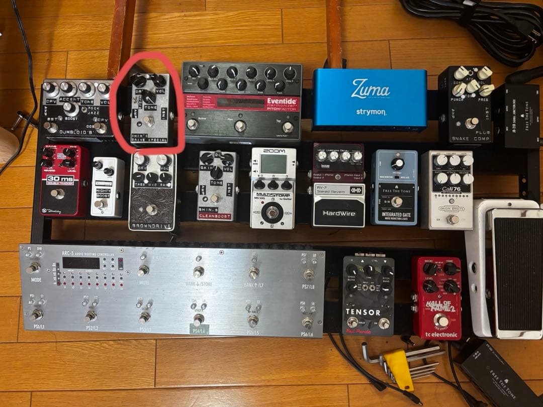 King Snake Two Bone - Amber Natural\rキングスネーク トゥーボーン\r\rBBキング、チャック・ベリー、ゲイトマウス・ブラウンらを魅了した、モダン・ブルースの父、Tボーン・ウォーカーのサウンド、アコースティックでありながら歯切れの良いサウンド。そのサウンドを目指して設計しました。\rhttps://www.taurus-corpo.com/kingsnake-threebone-onebone-twobone\r参考動画\rhttps://www.youtube.com/watch?v=9TprBoUI8oA\r\r製造は寺田楽器です。\rテールピースは交換してあります。\rオリジナルのテールピースが付属します。\r画像のものが全てです。\rハードケース付属です。\r室内のみで丁寧に扱われていました。\r\r発送たのメル便(匿名プライバシー配送)で発送します。\r\rTOP & BACK 5プライ カーリーメイプル \rSIDE 3プライ カーリーメイプル \rBODY WIDTH 17\" (431.8mm) \rBODY DEPTH 3.35” (85mm)\rBRACING Parallel Bracing \rBINDING Single Ivoroid (Body , Neck & Head) \rPICKGUARD BK 4プライ \rNECK Maple \rFINGERBOARD Rosewood \r RADIUS 12” (305R) \rSCALE 25.5” (648mm) \rNUT WIDTH Bone/ 1.68” (42.67mm) \rBRIDGE Tune-O-Type on Rosewood / Pinned Style \rTUNER Gotoh SD-90SL \rFINISH Lacquer \rPICKUPS KINGSNAKE TB-1 x 2 \rCONTROL 2 Vol. & 2 Tone / 1 Toggle Switch \rカラーアンバーナチュラル \rケースハードシェルケース(ホワイト&ブラックライン)\r\r種類...フルアコ\rカラー...ブラウン系\rNK&NRでよろしくお願い致します。\r返品は対応いたしかねます。| カテゴリー: | ホビー・楽器・アート>>>ギター>>>エレキギター |